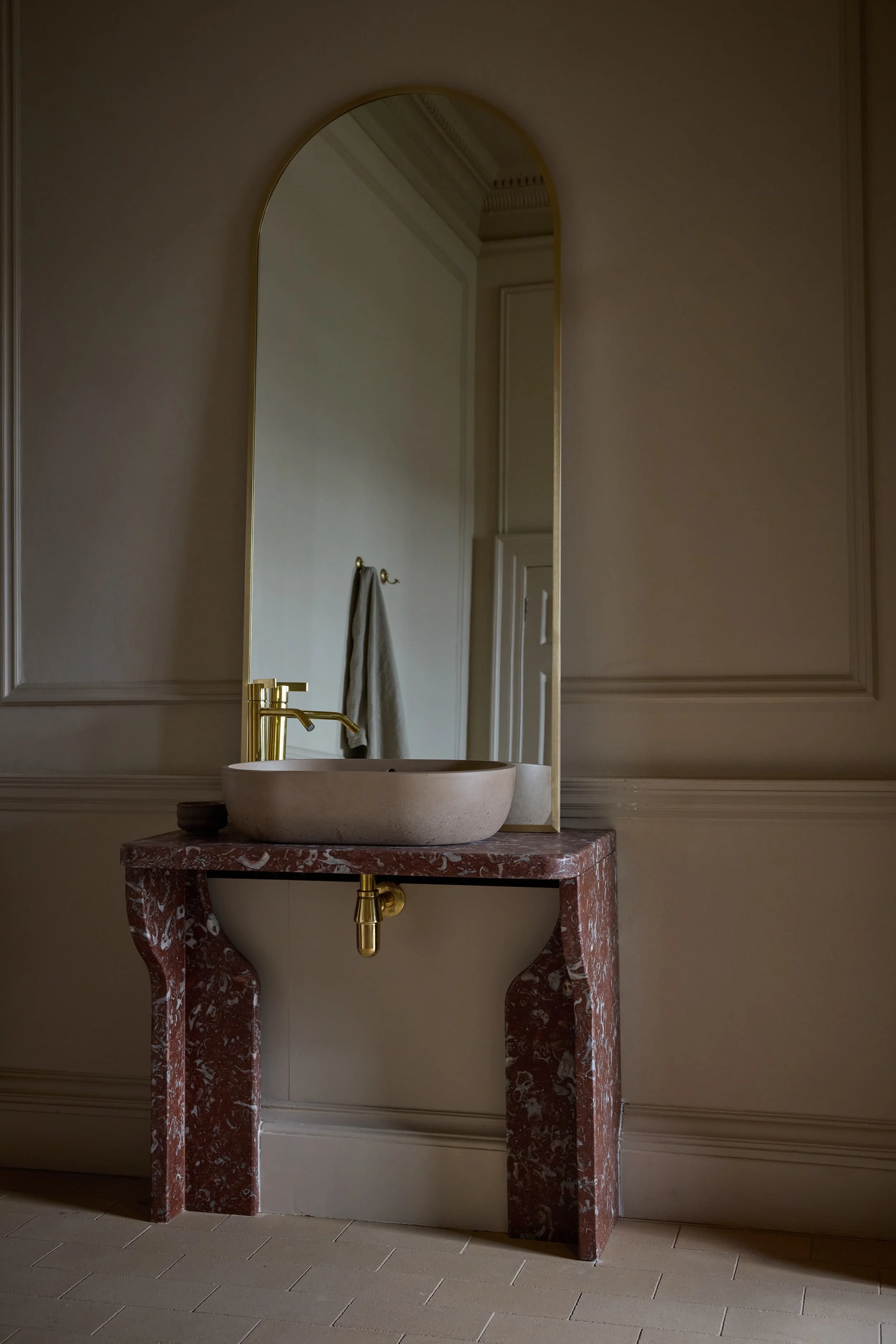 Box 9 designed the bespoke pieces, including the sculptural shower trays and custom basins, carefully responding to the architecture, material palette and quiet luxury of the interiors. The Poured Project translated these designs into reality - developing the form work and moulds, refining the technical detailing and hand-pouring every piece in our Yorkshire workshops.